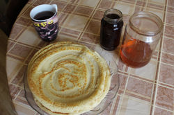 The necessary products are: 4 eggs, vanilla package, 1l. Fresh milk, 1 tablespoon olive oil cup of sugar and a cup of flour.