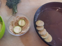 Zucchini in an oven with eggs and breadcrumbs